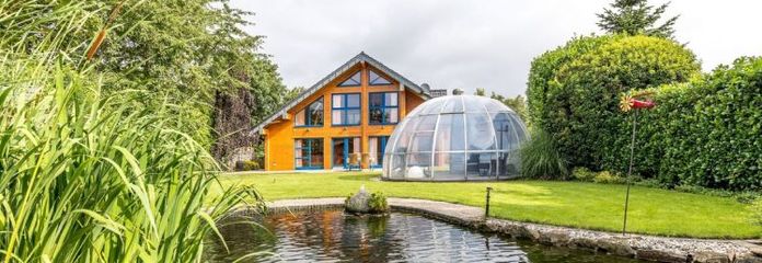 Goch-Hassum: Blockhaus mit 246 m² Wohnfläche, Doppelgarage, Lift & bester Aussicht