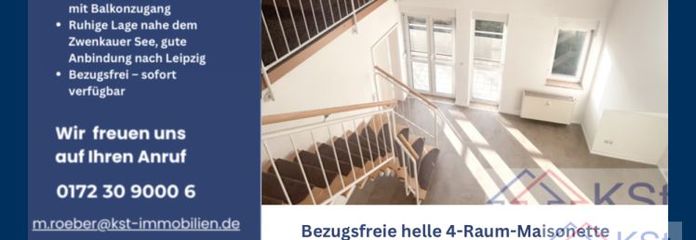 Bezugsfreie helle 4-Raum-Maisonette mit Balkon – Wohnen über den Dächern von Zwenkau