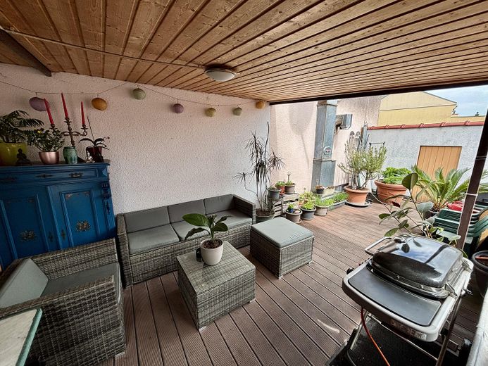 Die Wohnräume in den oberen Etagen bieten ein komfortables Zuhause mit flexiblen Nutzungsmöglichkeiten. Besonders hervorzuheben ist das ausgebaute Dachgeschoss, das als großzügiger Wohn- und Essbereich dient und durch eine ca. 20 m² große Dachterrasse mit rundum geschützter Privatsphäre ergänzt wird – ideal für entspannte Stunden im Freien oder als urbaner Rückzugsort mitten in der Stadt.