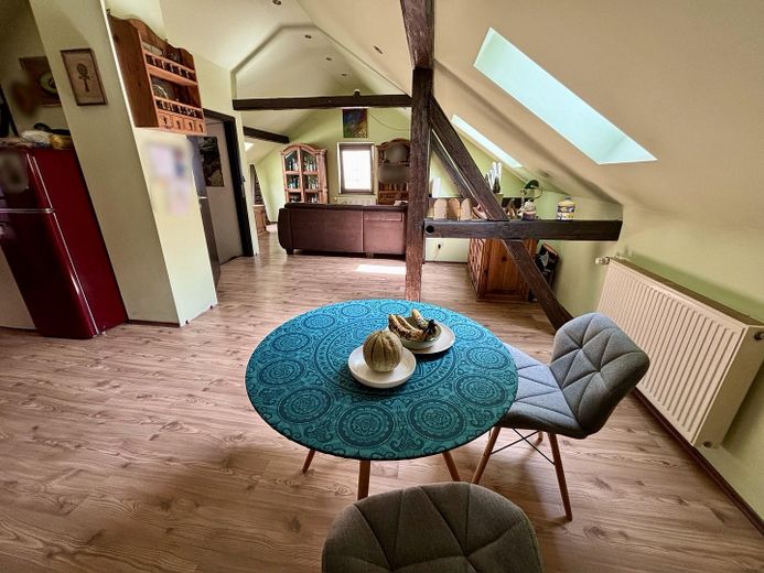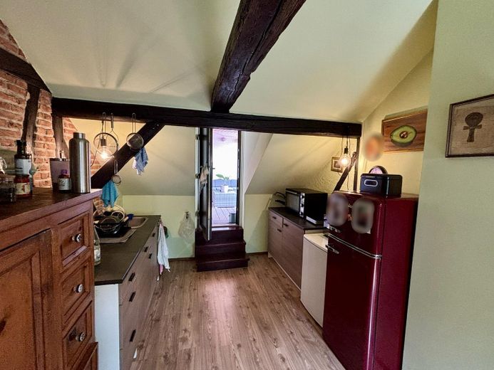 Die Ausstattung kombiniert historische Elemente mit modernem Komfort. Große Fenster sorgen für helle Räume, Holzelemente und traditionelle Details verleihen eine warme Atmosphäre. Trotz des charmanten Altbaucharakters sind viele technische und energetische Grundlagen bereits erneuert.