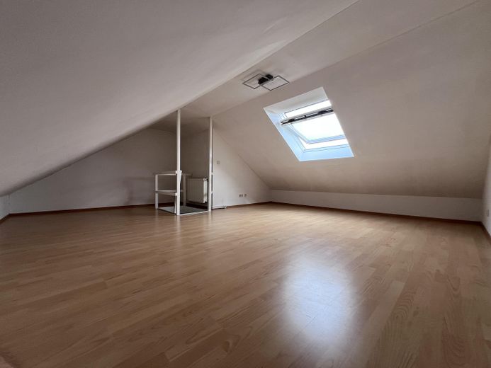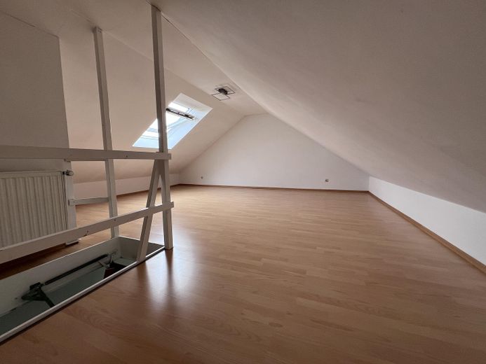 Das Raumangebot umfasst ein geräumiges Wohnzimmer mit Zugang zum sonnigen Südwestbalkon, eine Küche auch mit Zugang zur Loggia, ein Tageslichtbad mit Badewanne, Dusche und WC sowie ein Schlafzimmer. Darüber hinaus bietet die Wohnung einen wohnlich ausgebauten Spitzboden (29 qm Boden, 13qm Netto-Fläche) mit Heizung, Dachflächenfenster und Strom-/Kabelanschluss – ideal als Arbeits-, Gäste- oder Hobbybereich (Nutzfläche).