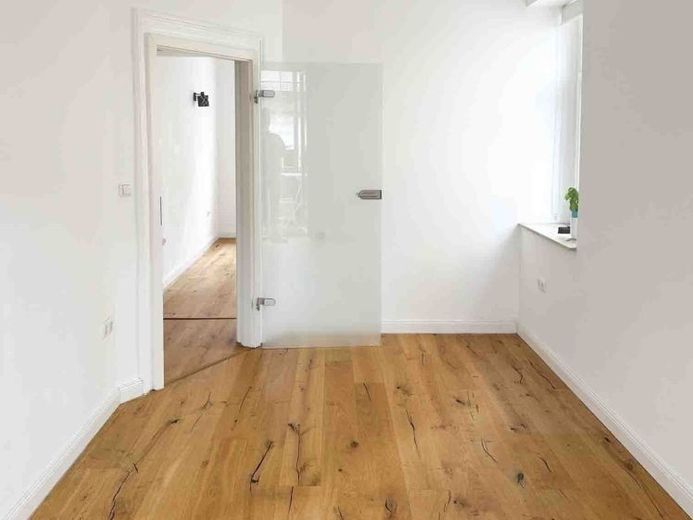 Die Wohnung befindet sich im Hochparterre eines gepflegten Wohnhauses, das 2015 umfassend saniert wurde. Sie bietet drei helle Zimmer, darunter eines mit Zugang zum Balkon, der sich ruhig zum Innenhof orientiert. In allen Räumen wurde ein geschmackvoller Echtholzparkettboden verlegt.