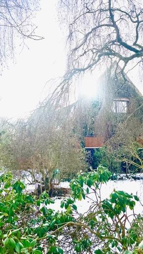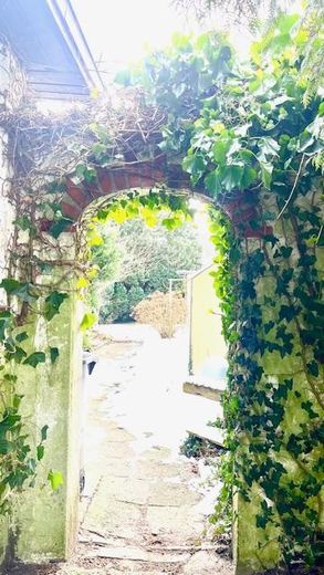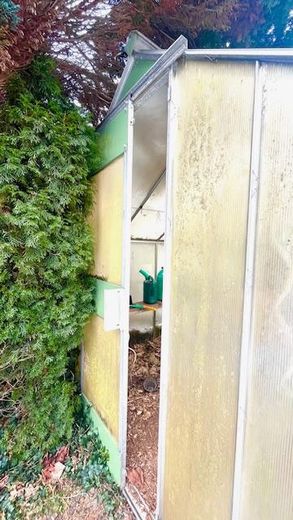 Das Haus befindet sich auf einem über 800 m² großen Eckgrundstück, leicht zurückgesetzt von der Straße – ruhig, geschützt und mit viel Privatsphäre. Der liebevoll eingewachsene, fast verwunschene Garten bietet zahlreiche Rückzugsmöglichkeiten. Ein großer, alter Apfelbaum, der jedes Jahr reichlich Früchte trägt, prägt das Grundstück und macht den Garten zu einem besonderen Ort für Kinder, Hobbygärtner und naturverbundene Menschen. Ergänzt wird das Außenareal durch ein stabiles Gewächshaus, einen Geräteschuppen, eine Garage sowie einen zusätzlichen Stellplatz. Die von Efeu und Wein bewachsene Fassade verleiht dem Haus eine warme, natürliche Ausstrahlung.