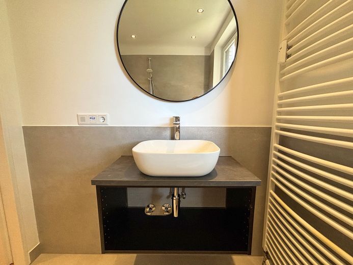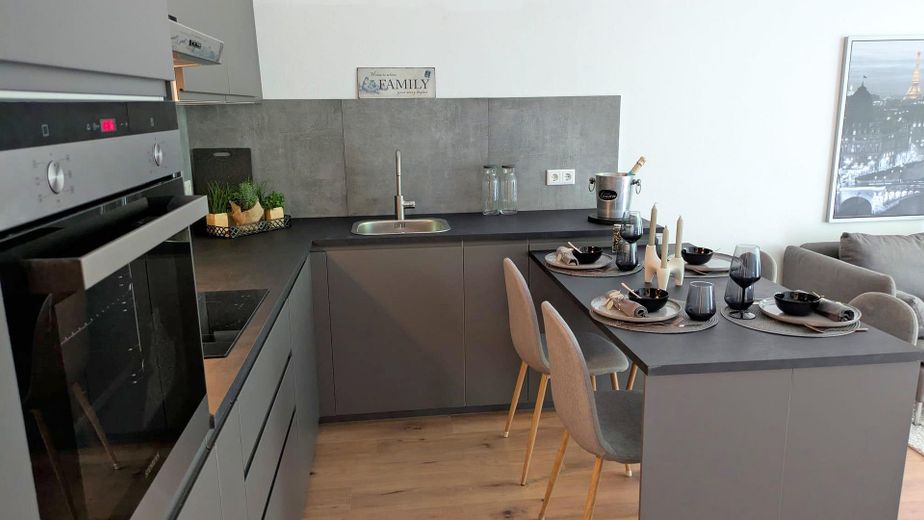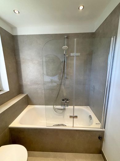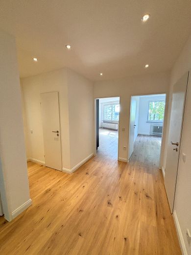 Zum Verkauf steht eine umfangreich modernisierte 3,5-Zimmer Eigentumswohnung mit großem Balkon. Die erst kürzlich abgeschlossenen Arbeiten umfassten die Neugestaltung der gesamten Wohnung, einschließlich des Bades und der Küche u.A. mit verputzten und geschliffenen Wänden, Fliesen im Großformat 60x120 cm und 80x80cm und LED-Deckenspots in Flur und Bädern. Die neue und offene Küche ist ausgestattet mit modernen grifflosen Fronten, Geschirrspüler, Induktionskochfeld, Kühl/Gefrier-Kombi, Backofen in moderner Höhe, uvm.