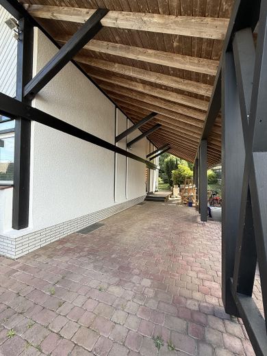 Ergänzt wird das Angebot durch einen großen Carport, der Platz für 2 Fahrzeuge bietet und/oder auch noch zusätzlich Platz für ein großes Wohnmobil. Die großzügige, gepflasterte Einfahrt bietet viel Raum.