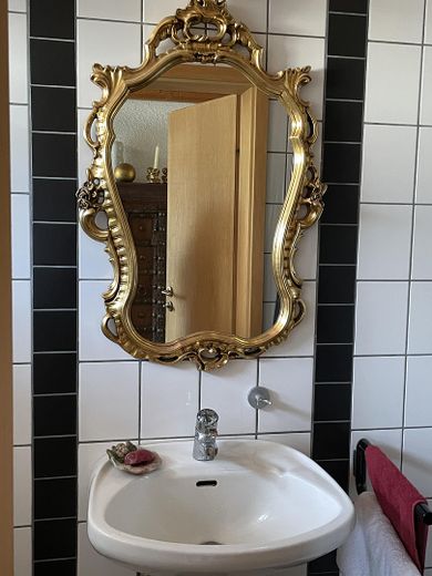 Ein besonderes Highlight ist der Wintergarten, der bis zum Obergeschoss hochragt und über eine stilvolle Holztreppe zur Galerie führt. Der Fußboden des Wintergartens ist mit Naturschiefer verlegt, der die Wärme der Sonne speichert und diese wieder abgibt. Hier finden Sie einen kleinen Springbrunnen, der bei Bedarf vor sich hin plätschert.