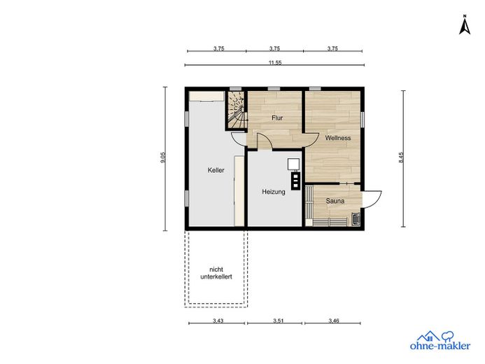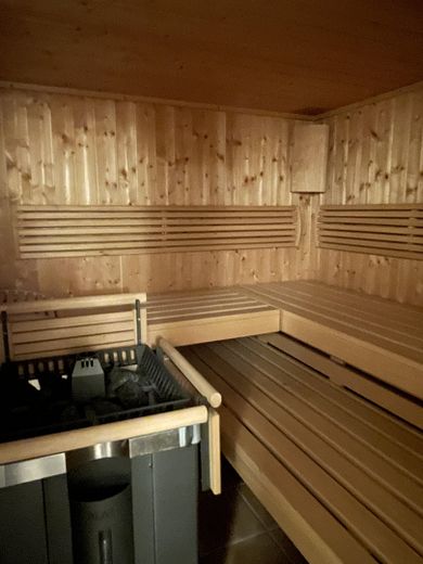 Im Untergeschoss befindet sich ein Wellnessraum beheizt mit einer Elektro-Fussbodenheizung sowie eine hochwertige Sauna mit Sanarium.