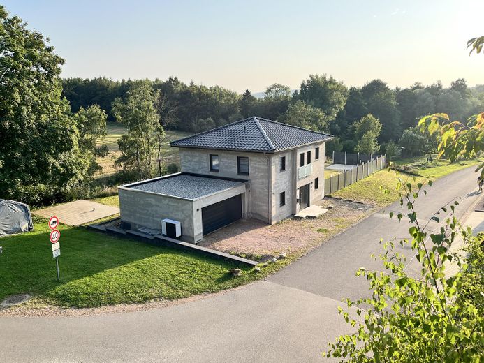 Zum Verkauf steht ein hochwertiges, energieeffizientes Massivhaus in Poroton-Bauweise (Baujahr 2021, bezugsfertig 2022) in attraktiver Ortsrandlage mit Weitblick – gelegen im Ortsteil Schwarzenbach/Otzenhausen (Gemeinde Nonnweiler, Saarland).