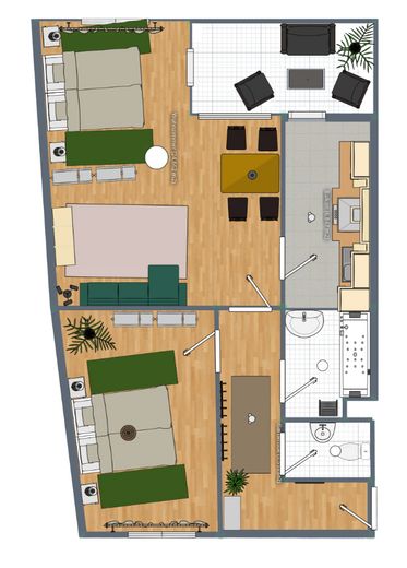 Gemütliche 2-Zimmer-Wohnung im 2. OG mit Balkon – der perfekte Ort, um nach einem langen Arbeitstag oder einer ausgiebigen Radtour durch die Natur aufzutanken. 4 flexible Einzelbetten bieten Komfort für Monteure, Geschäftsreisende, Familien oder Freundesgruppen. In der voll ausgestatteten Küche lassen sich gemeinsame Mahlzeiten zubereiten, während das Bad mit Wanne und das separate WC für extra Komfort sorgen. Abends lädt der Balkon dazu ein, den Tag entspannt ausklingen zu lassen.