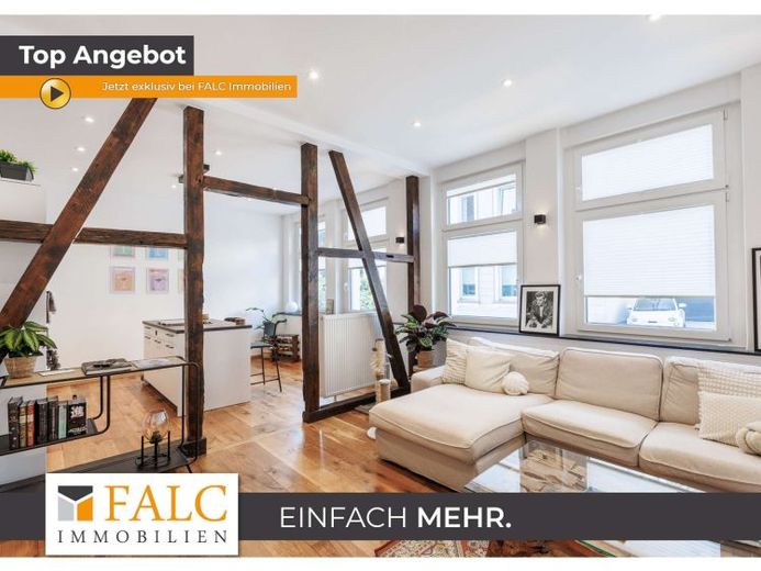 Im ersten Obergeschoss befindet sich eine weitere 2-Zimmer-Wohnung mit ca. 67 m². Sie verfügt über einen großen, offenen Wohn-Essbereich mit moderner Miele Küche aus 2024 (Eigentum Hausbesitzer), ein Schlafzimmer mit angrenzendem Tageslichtbad, das sowohl mit einer Dusche als auch mit einer Badewanne ausgestattet ist. Die Schlafzimmerfenster nach hinten verfügen über elektrische Rollladen. Diese sind bereits bei der Kernsanierung des gesamten Hauses 2006/2007 eingebaut worden. Auch dieser Wohnung ist ein separater Abstellraum im Hausflur zugeordnet.