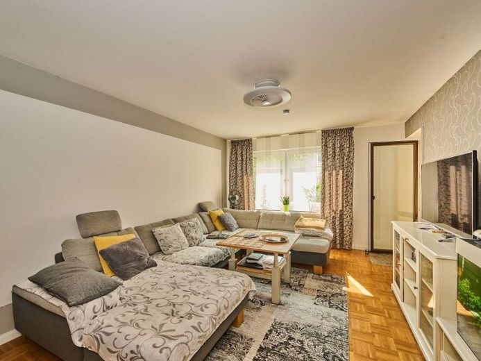 Zur Wohnung gehören ein abschließbares Kellerabteil sowie eine Einzelgarage mit Stellplatz davor. Die Beheizung erfolgt über eine Ölzentralheizung, Baujahr 2010. Im Rahmen von Modernisierungsmaßnahmen wurden im Jahr 2015 Dach und Fassade erneuert, im Jahr 2016 erfolgte der Austausch der Fenster gegen dreifach verglaste Kunststofffenster.