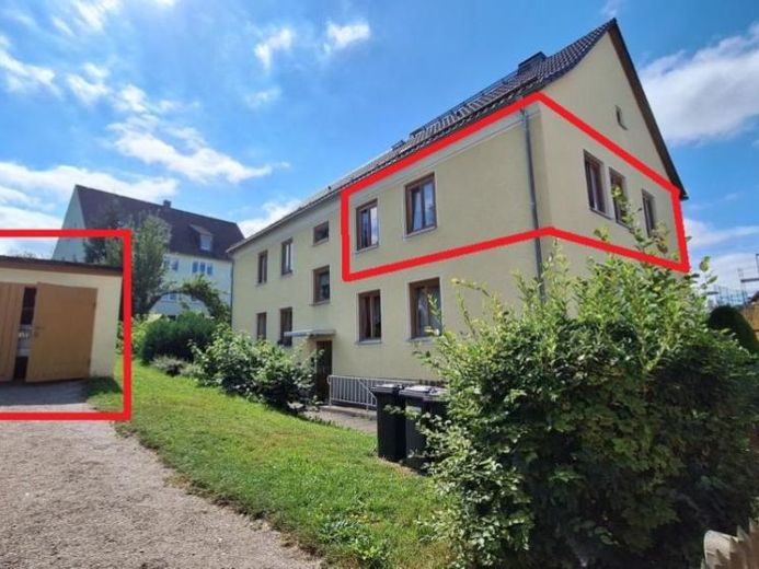 Die Wohnung liegt im 1. Obergeschoss rechts in einem Haus mit 4 fast gleichgroßen Wohnungen (insgesamt ca. 255m²). Das dazugehörige Grundstück hat eine Größe von 1276 m².