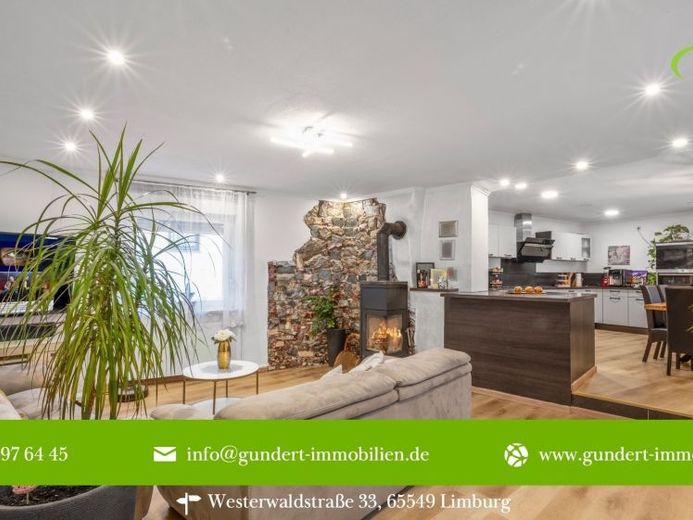 Das Innere des Hauses zeichnet sich durch einen gelungenen Mix aus modernem Design und gemütlichem Ambiente aus. Ein Highlight bildet der großzügige Wohnbereich mit einem einladenden Kamin, der für behagliche Stunden in den Wintermonaten sorgt. Die Einbauküche ist funktional und stilvoll gestaltet.