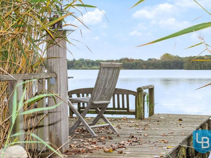 Einen Moment der Ruhe: Die Füße baumeln am Holzbohlenrand, der Blick gleitet über den klaren Stocksee. Der eigene Badesteg lädt dazu ein, die Zeit für einen Augenblick anzuhalten. Lauschen Sie dem leisen Plätschern des Wassers, während Sie auf der einladenden Bank verweilen – ein perfekter Ort zum Entspannen und zugleich ein sicherer Platz, um ein kleines Boot anzulegen. Wer hier sitzt, spürt mehr als nur einen Ort – hier wird die Seele leicht, und die Welt weit.
