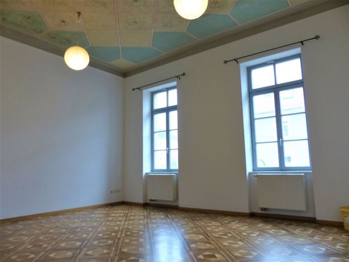 Darüber hinaus besticht die beworbene Mietwohnung durch den klassischen Altbau-Charme. Die durchgehend großzügige Raumhöhe sorgt für ein tolles Raumgefühl und verleiht den Zimmern eine offene Großzügigkeit. Zudem finden Sie in dieser Wohnung historische Decken-Malereien und gepflegte Echtholz-Böden.