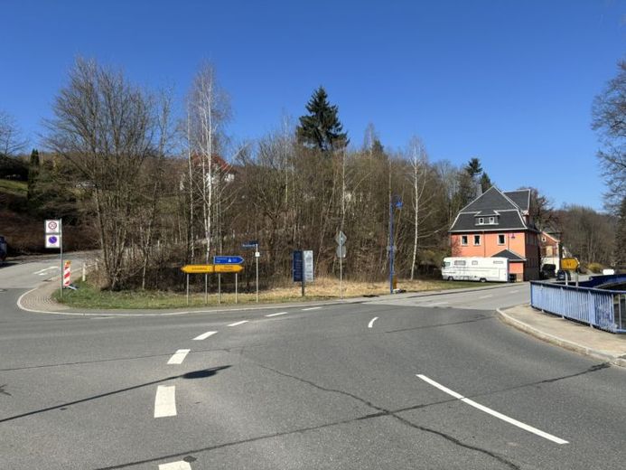 Die zu verkaufende Fläche wird aktuell nicht genutzt und ist nicht eingefriedet. Ca. 50% sind eben mit Grünbewuchs an der Hauptstraße liegend und eignen sich entsprechend als Bauplatz. Die restlichen 50% im hinteren Bereich weisen eine Hanglage auf und sind gegenwärtig mit Gestrüpp bewachsen.