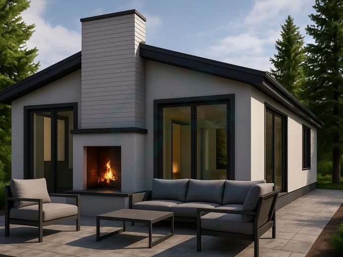 Ein schöner Platz zum Wohnen und entspannen in ländlicher Umgebung. Wir bieten Ihnen einen MODULHAUS Bungalow der neuesten Generation.