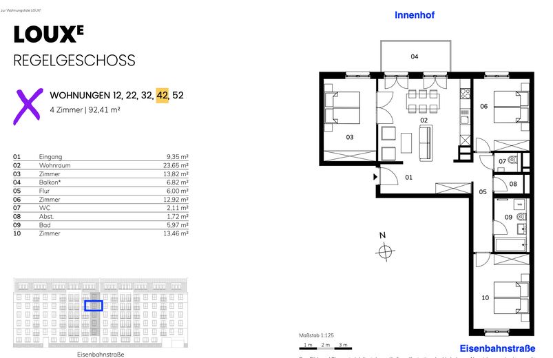 Das Wohnensemble LOUX erstreckt sich entlang der Torgauer Straße und der Eisenbahnstraße. Die beiden Gebäude bilden gemeinsam mit dem Eckhaus einen großen, ruhigen Innenhof – ein geschützter Rückzugsort im urbanen Umfeld.