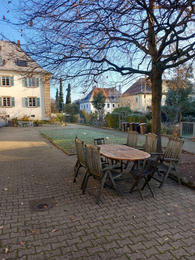 Das Haus liegt in einer ruhigen und grünen Wohngegend Im Oberkämmerer. Die