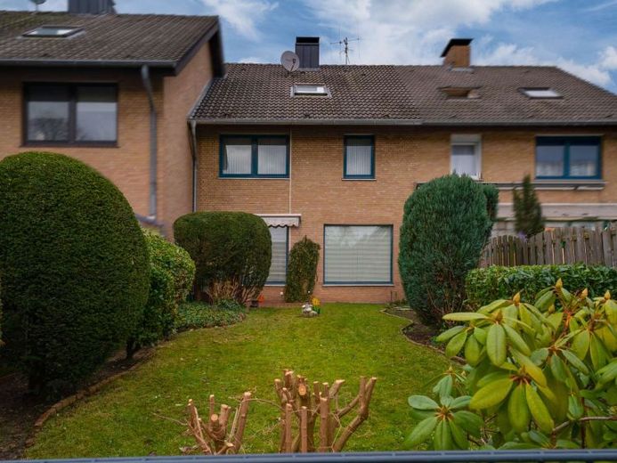 Der Außenbereich besticht durch Rasenflächen, Sträucher und Beete, die dem Grundstück eine einladende Note geben. Das Grundstück ist eingezäunt und sorgt damit für ein gewisses Maß an Sicherheit. Der Garten ist ausgerichtet zur Südseite, was die Möglichkeit für eine sonnige Terrassenflächen und angenehme Lichtverhältnisse bietet, ideal zum Entspannen oder für gemütliche Stunden im Freien.