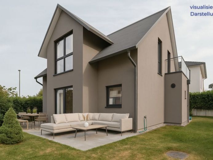 Zum Verkauf steht dieses moderne Einfamilienhaus in Ortsrandlage mit unmittelbarer Nähe zur Natur. Auf einem freistehenden Eckgrundstück mit ca. 454 m² Fläche bietet es ca. 113 m² Wohnfläche - verteilt auf 5 Zimmer.