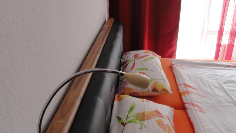 Schlafzimmer mit 1,80-m-Bett (orthopädische Matratzen) und Kleiderschrank