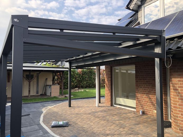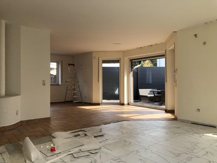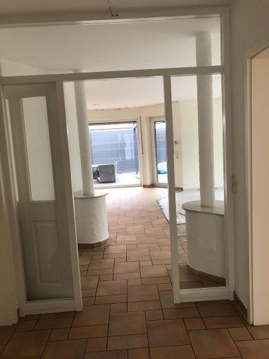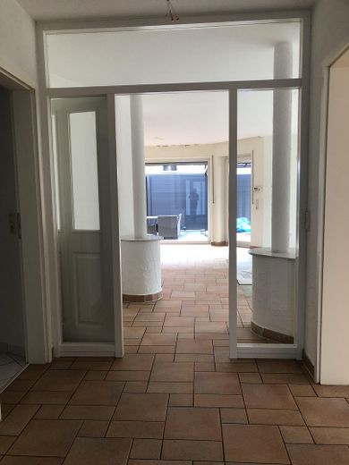 Auf der Terrasse sorgt eine neue Überdachung für Sonnenschutz. Die Haustür ist neu aus 2025. Die Innentüren im Erdgeschoss werden vor dem Verkauf ausgetauscht und erneuert.