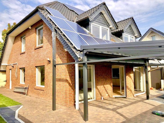 Eine Fotovoltaik Anlage, eine zentrale Staubsaugeranlage, eine zentrale Be- und Entlüftungsanlage mit Wärmerückgewinnung, Fußbodenheizung im Erdgeschoss und im Bad im ersten OG, Badewanne mit Whirlpool-Funktion. Eine Wollbox ist vorbereitet, eine Terrassenüberdachung mit Verschattung sorgt für Schatten. Hinzu kommen neue Innentüren und eine neue Haustür.