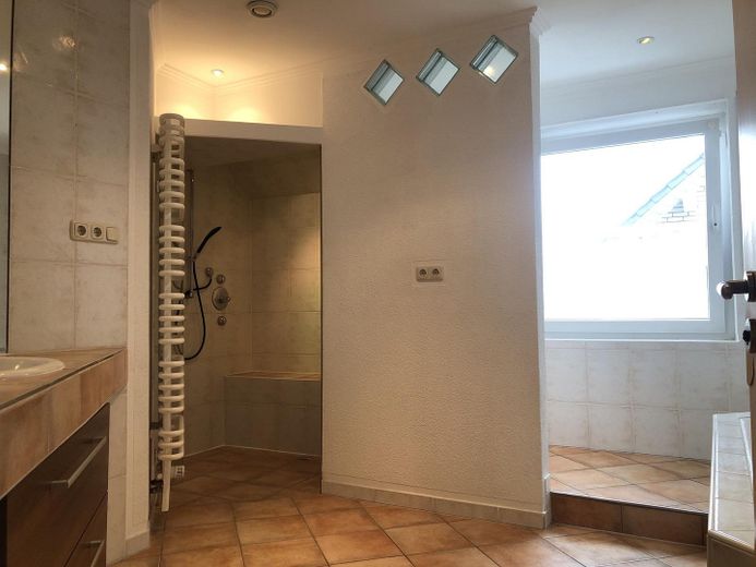 In Bad Salzuflens Stadtteil Knetterheide wird dieses hochwertige Einfamilienhaus zum Verkauf angeboten. Auf einer Grundfläche von 11,9 × 10,4 m findet sich im Erdgeschoss ein sehr großer Wohn-Essbereich, mit viel Platz für zum Beispiel eine Kochinsel. Zudem gibt es im Erdgeschoss ein Arbeitszimmer, einen Hauswirtschaftsraum, ein Gäste WC und einen Technikraum. Im ersten Obergeschoss finden sich drei Schlafzimmer und das große Bad mit großer Duschkabine und Whirlpool. Zusätzlich gibt es einen begehbaren Kleiderschrank und einen Heizungsraum. Im Dachgeschoss gibt es einen großen Raum mit zwei Dachfenstern.