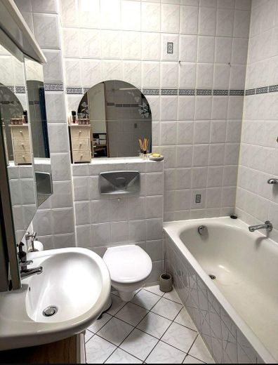 Beim Betreten der Wohnung finden Sie direkt eine Garderobe und ein Tageslichtbadezimmer vor. Das Badezimmer ist ausgestattet mit einer Badewanne und einer Dusche.
