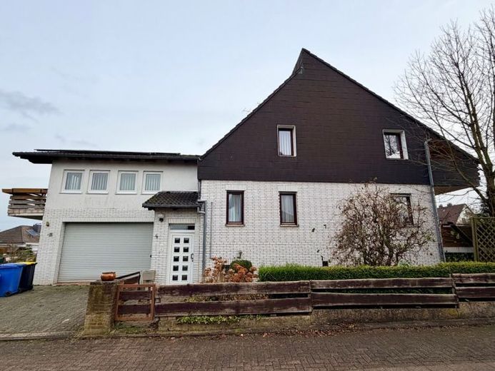 Sofort frei: wunderbares Haus mit Einliegerwohnung in Staufenberg-Landwehrhagen (7 bis 8 Zimmer, 262 m² Gesamtwohnfläche, 125 m² Nutzfläche – 3 Balkone, 2 Photovoltaik-Anlagen, Solarwärmepumpe, Kamin, Doppelgarage, Treppenlifte, Garten) – renovierungsbedürftig. Gelegen auf einem 860 m² großen Eckgrundstück an einer ruhigen Wohnstraße in Ortsrandlage sowie bester Erreichbarkeit der sehr guten Infrastruktur. Auf einen Feldweg gelangen Sie nach 100 m. Grundschule, Kindertagesstätte, Einkaufsmöglichkeiten, Bushaltestellen und Restaurants sind kurze Fußwege entfernt.