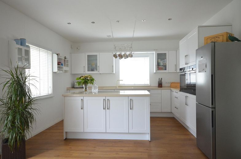 Eine Gas-Zentral-Heizung erwärmt das Haus über eine Fußbodenheizung in jeder Etage und in jedem Raum. Die 3-fach verglasten Fenster bieten viel Schutz vor Kälte und dennoch sind alle Zimmer aufgrund der Größe der Fenster lichtdurchflutet. Drei zusätzliche Veluxfenster mit elektrischen Außenrollläden bringen ebenso sehr viel Licht in das obere Geschoss.