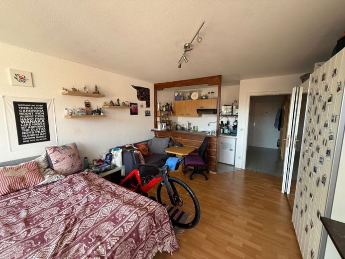 Das angebotene Apartment befindet sich in einem gepflegten Gebäude aus dem Jahr 1974 und liegt auf der zweiten Etage. Die Immobilie verfügt über eine Wohnfläche von ca. 33 m² und ist in die Energieeffizienzklasse D eingestuft. Die Beheizung des Objekts erfolgt mittels Fernwärme. Zu der Wohnung gehört ein Balkon sowie ein Keller mit einer Fläche von ca. 5 m². Das gepflegte Apartment besteht aus einem Wohn- und Schlafzimmer mit Zugang zum Balkon, einer offenen Küche. Von der Loggia aus haben Sie einen wunderbaren Bergblick. Der Flur und ein Badezimmer mit Wannenbad runden das Wohnangebot geschickt ab. Die Räumlichkeiten sind hell und freundlich gestaltet. Die Immobilie ist vermietet und eignet sich daher ideal als Kapitalanlage. Der Keller bietet zusätzlichen Stauraum. Zu den gemeinschaftlichen Flächen gehört ein Wasch- und Trockenraum sowie ein Fahrradkeller. Gerne bringen wir ihnen das Objekt bei einer Besichtigung näher.