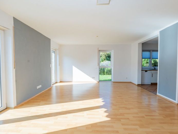 Der Wohnbereich überzeugt durch eine offene Atmosphäre und den direkten Zugang zum eigenen Garten.
