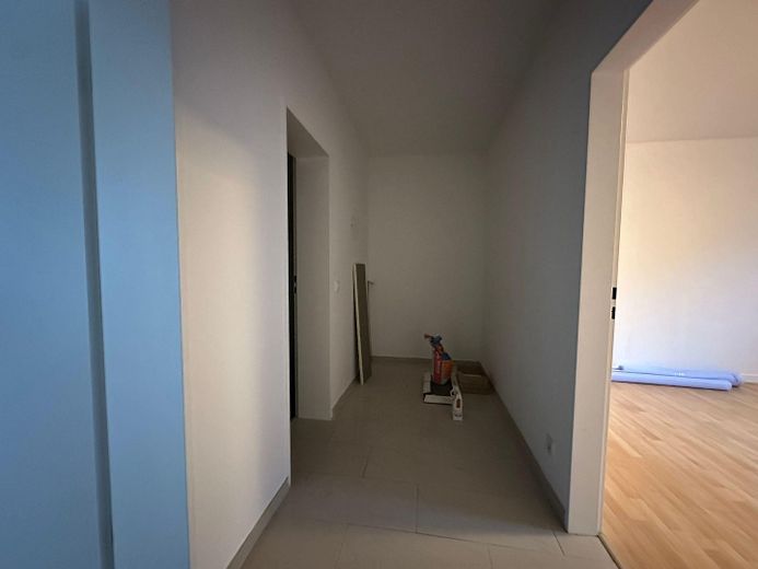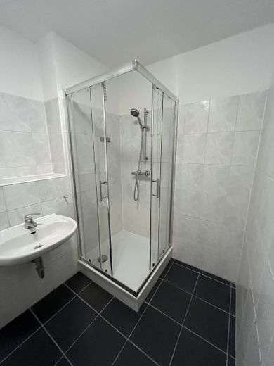 Das Bad ist neuwertig, und hell und zeitlos gefliest, in der ganzen Wohnung ist Laminat verlegt, weiß gestrichen mit neuen Türen, sowie einer Einbauküche.