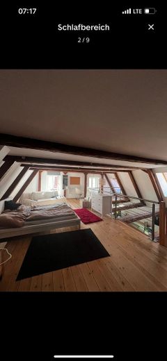 Diese helle Maisonette-Wohnung liegt in der Innenstadt von Greifswald. Sie ist mit Fachwerkbalken durchzogen. Die Dachfenster lassen viel Tageslicht rein. Die doppelten Fenster sperren jegliche Geräusche von der Straße aus. Es ist eine Einbauküche inklusive und die Küche ist durch eine Glaswand und Tür vom Wohnbereich getrennt. Die Wohnung ist sehr geräumig und hat unverwechselbaren Charme. Im Hinterhof kann man sein Fahrrad durch ein Extra-Tor sicher abstellen.