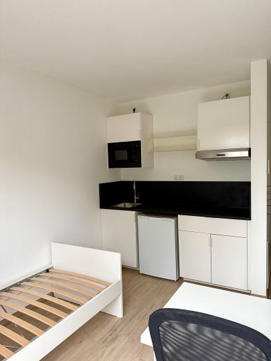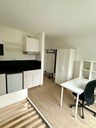 •Voll möbliert: Bett, Schreibtisch, Stuhl, Kleiderschrank, Pantryküche, etc.
