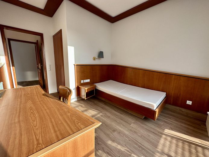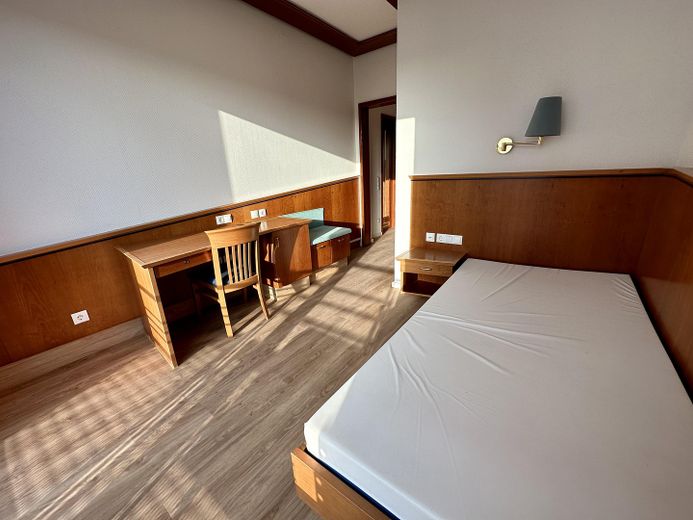 Dieses ist mit einem Einzelbett sowie weiteren Einbaumöbeln ausgestattet. Zudem haben Sie von hier aus Zugang zu einem Balkon.