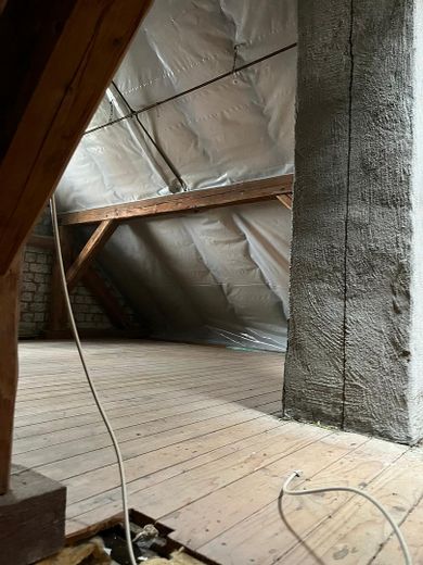 Der noch unausgebaute Dachstuhl bietet zusätzlichen Wohnraum.