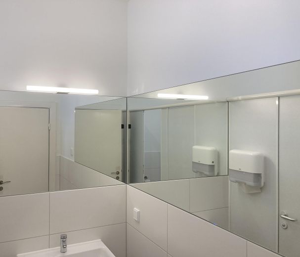 Massivholz-Parkett, Glaswände und -türen, Teamräume, Glasfaseranschluss, LAN-Verkabelung, Küche, Einbauschränke, grundsanierter Sanitärbereich, außenliegender fernbedienter Sonnenschutz. Zwei schnelle Aufzüge.