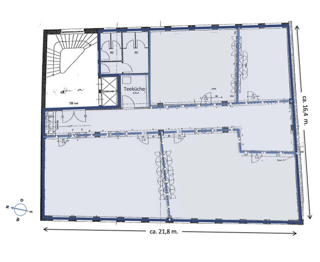 Der großzügige Grundriss liefert Raum-Flexibilität: Für bekannte und neue Nutzungen im Wandel der Büroarbeit. Ideal für kommunikatives Zusammenarbeiten in vielfältig nutzbaren, angenehmen Räumen. Bei Bedarf können einige Räume unterteilt werden. Räume für Teamarbeit, Projektarbeit, Task Forces und Get Together - auf einer eigenen Etage. Markanter Bau der gemäßigten Moderne, zweite Gründerzeit, Mitte 20. Jahrhundert.