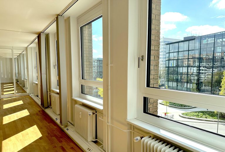 Freundliche, sehr helle und vielseitige Räume in Hamburgs Mitte. Beidseitige Belichtung und Glaswände schaffen transparente Räume im gesamten Objekt. Naturholzboden und Offenheit fördern Raumerlebnis und Wohlbefinden.