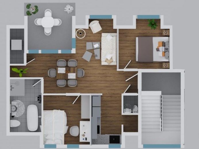 Die einzelnen Wohnungen wurden mit attraktiven hochwertigen Fliesen und hochwertigen Eiche-Parkettböden bzw. hochwertigen Vinylböden ausgestattet. Durch die hochwertige Sanierung und die interessante gefragte Lage ist eine hohe Wohnqualität gegeben. Zu jeder Wohnung gehört ein geräumiger Kellerraum. Ebenso sind je Haus ein Waschraum,Trockenraum sowie ein Fahrradraum vorhanden.
