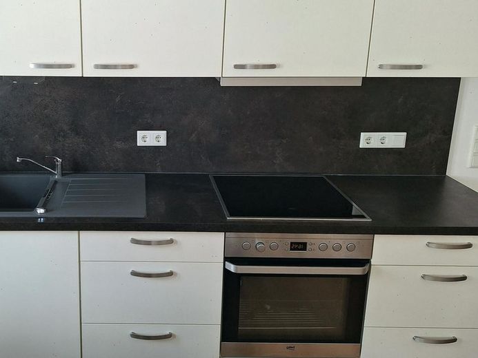 Die Wohnküche ist mit einer kompletten Einbauküche mit Induktionskochfeld, Kühlschrank mit Gefrierfach sowie Essbereich ausgestattet. Geschirr, Besteck sowie Kochtöpfe sind vorhanden. Im Wohnbereich befindet sich ein großes Ledersofa mit Couchtisch, ein Fernseher sowie eine Musikanlage.