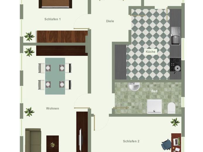 Die harmonisch aufgeteilte und im Erdgeschoss gelegene 3-Zimmerwohnung bietet insgesamt eine Wohnfläche von 95,20 m². Großzügig dimensioniert und durch hohe Decken geprägt, finden Sie ausgehend vom Wohnungsentrée mit Garderobe, die zum Garten gelegene Wohnküche mit direkt angrenzendem Vorratsraum auf insgesamt ca. 18,5 m². Das moderne Badezimmer mit barrierefreier Dusche bietet eine Wohnfläche von 6,20 m². Zwei Schlafzimmer mit Größen von 17,21 m² sowie 14,19 m² sowie das knapp 28 m² große Wohn- und Esszimmer runden die Wohnung ab. Das kleinere der beiden Schlafzimmer wird seitens der Mieter als Arbeitszimmer genutzt!