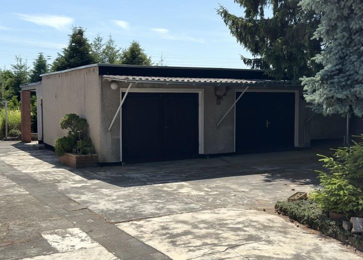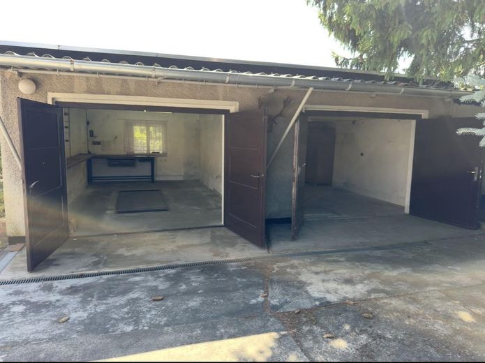 Ein echtes Highlight ist die großflächige Doppelgarage mit angrenzendem Nebengebäude – insgesamt über 100 m² zusätzliche Nutzfläche, ideal für Fahrzeuge, Werkstatt oder Lager. Die lange Einfahrt und das gepflegte Grundstück mit schönem Grünbestand unterstreichen den großzügigen Charakter dieses Anwesens.