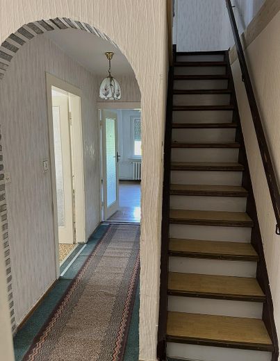 Im Erd und Obergeschoss befinden sich 4 gut geschnittene Zimmer, eine großzügiges Wohnzimmer und ein funktionales Tageslichtbad. Die Immobilie ist unterkellert, was zusätzlichen Stauraum und vielseitige Nutzungsmöglichkeiten bietet – etwa als Hauswirtschafts- oder Hobbybereich.