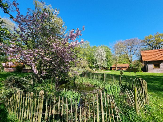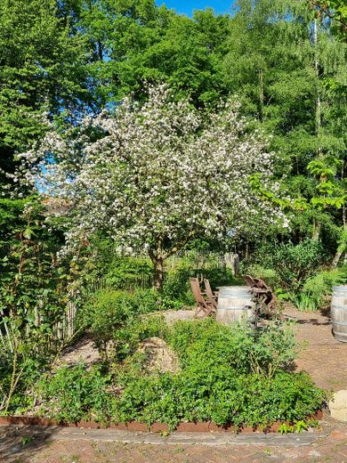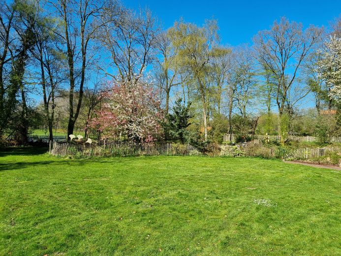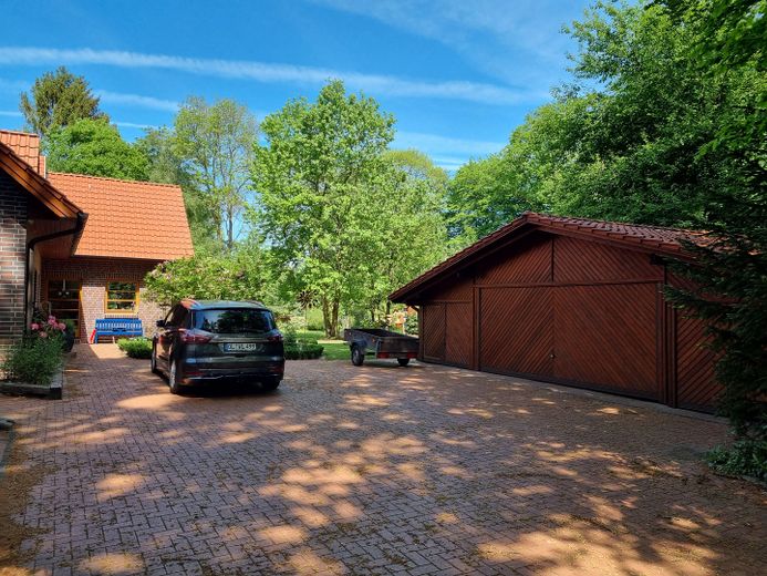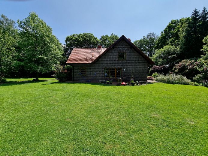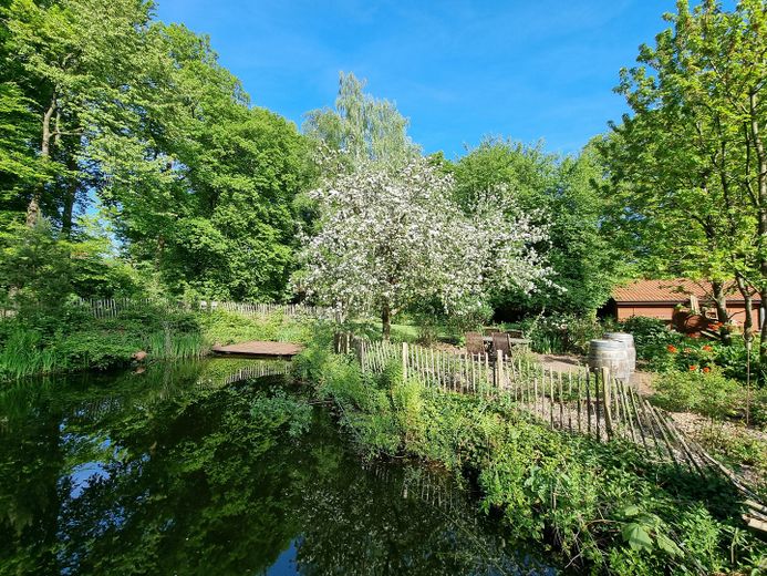 Das großzügige Grundstück mit einer Fläche von 4.487 m² grenzt teilweise an ein artenreiches Landschaftsschutzgebiet und ermöglicht einen freien Blick ins Grüne sowie ein hohes Maß an Ruhe und Privatsphäre.