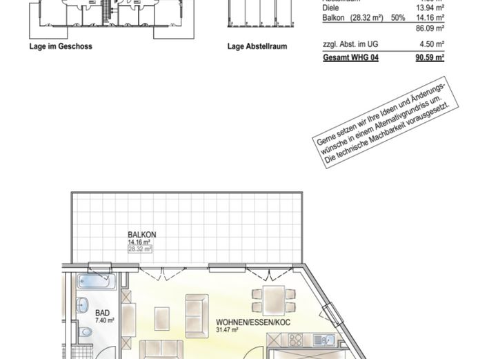 Jeder Wohnung ist ein Tiefgaragenstellplatz mit angrenzendem Abstell/Kellerraum im Kellergeschoß zugeordnet. (Mehrpreis 23.000 EUR)