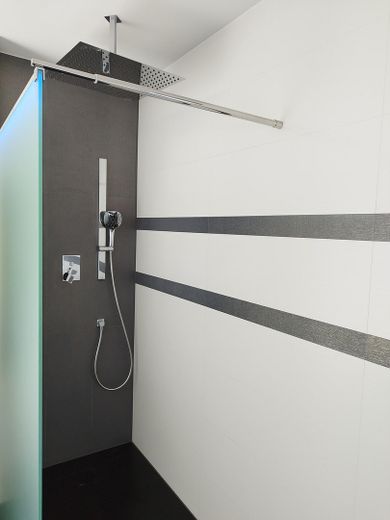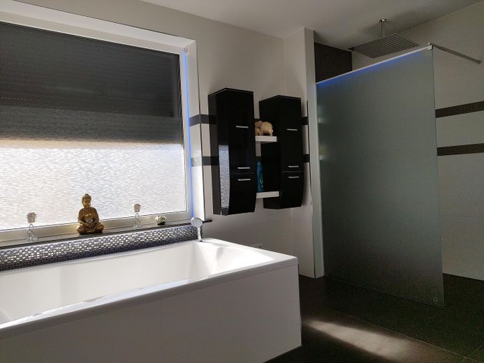 (bodenebene Dusche, Badewanne, Waschbecken & WC)